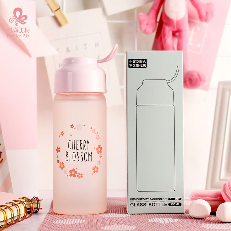 Bình nước thủy tinh mờ in hình hoa xinh 350ml