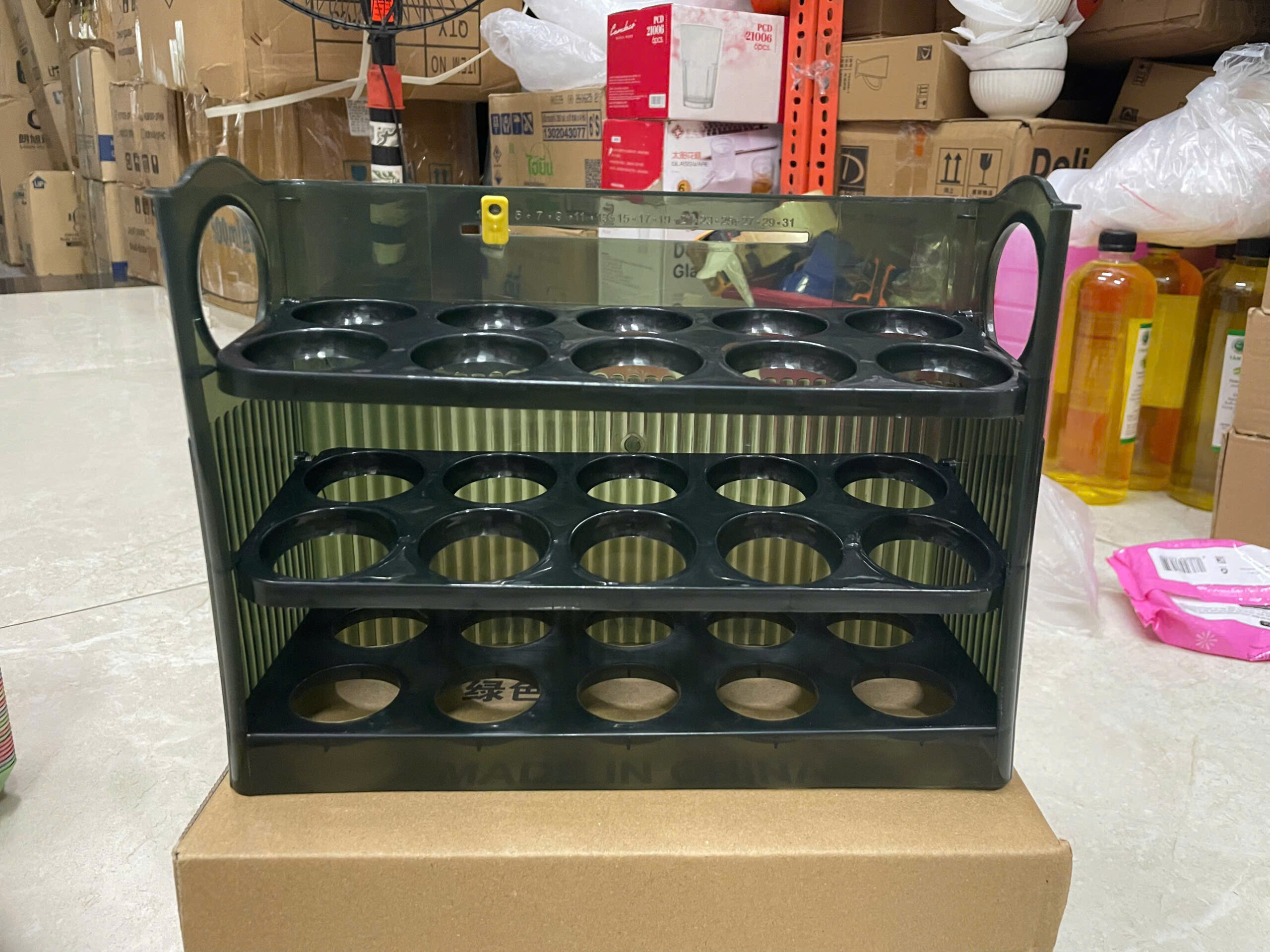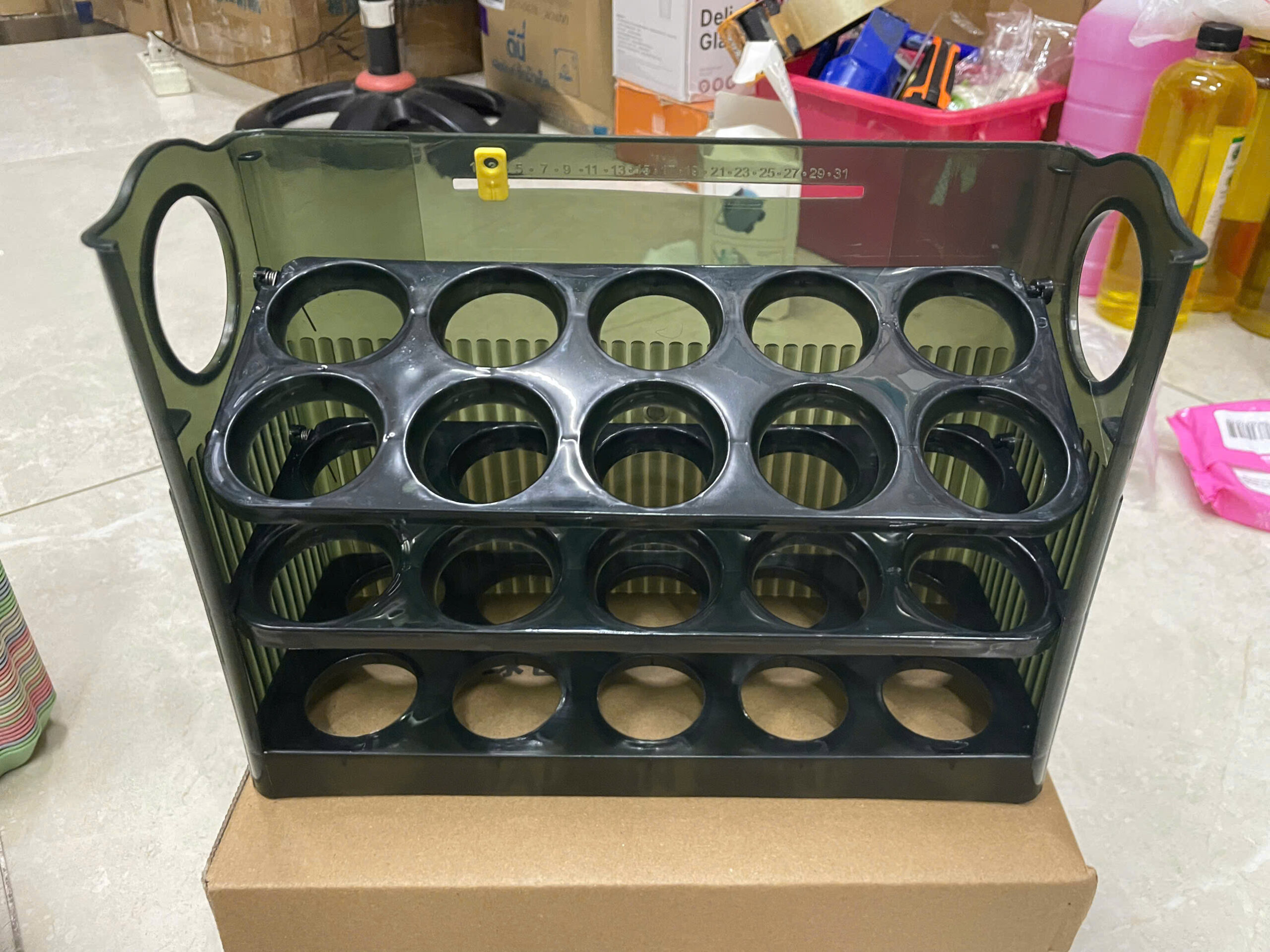 👉 Khay đựng được 30 quả, 3 tầng mỗi tầng 10 quả rất gọn. Có thể để ở cánh tủ lạnh, muốn lấy ở tầng dưới cũng tiện nha.