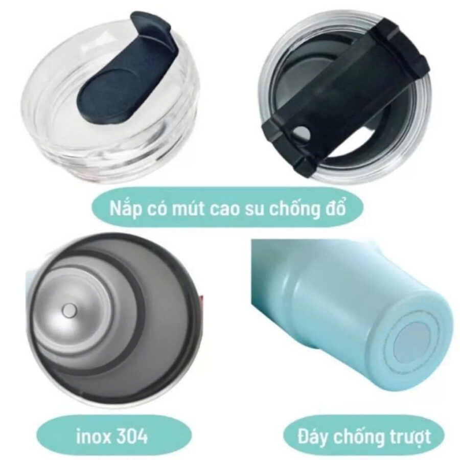 👉Hệ thống nắp đậy chống tràn giúp cho nước không bị đổ ra ngoài, thuận tiện mỗi lúc mang đi, sử dụng.