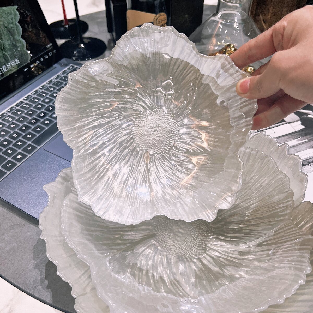 Bộ 3 dĩa thủy tinh hoa nổi – đẹp sang như setup nhà hàng