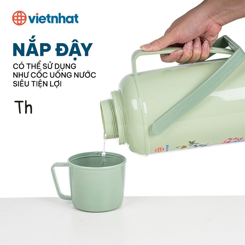 👉 Phích nước Việt Nhật có quai cầm chắc chắn, dễ dàng cầm nắm và di chuyển. Sản phẩm có lớp cách nhiệt tốt, giữ nhiệt lâu, dung tích lớn để chứa đựng nước.