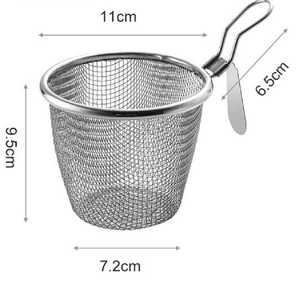Rổ cao 9,5cm , chiều ngang 11cm , đáy rộng 7,2cm , tay cầm 6,5cm