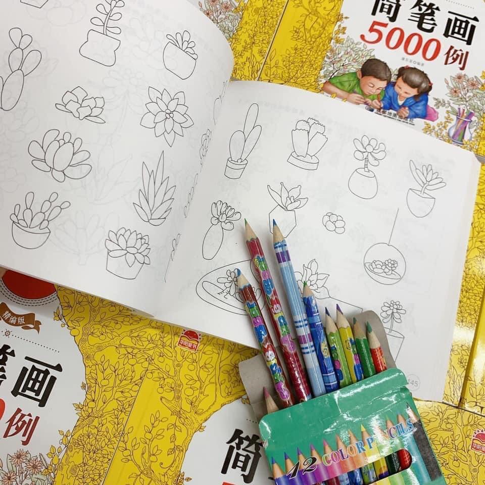 - Bộ Sản Phẩm bao gồm: 1 Cuốn tập tô 5000 hình vẽ. Tặng kèm 1 Hộp 12 cây bút chì màu