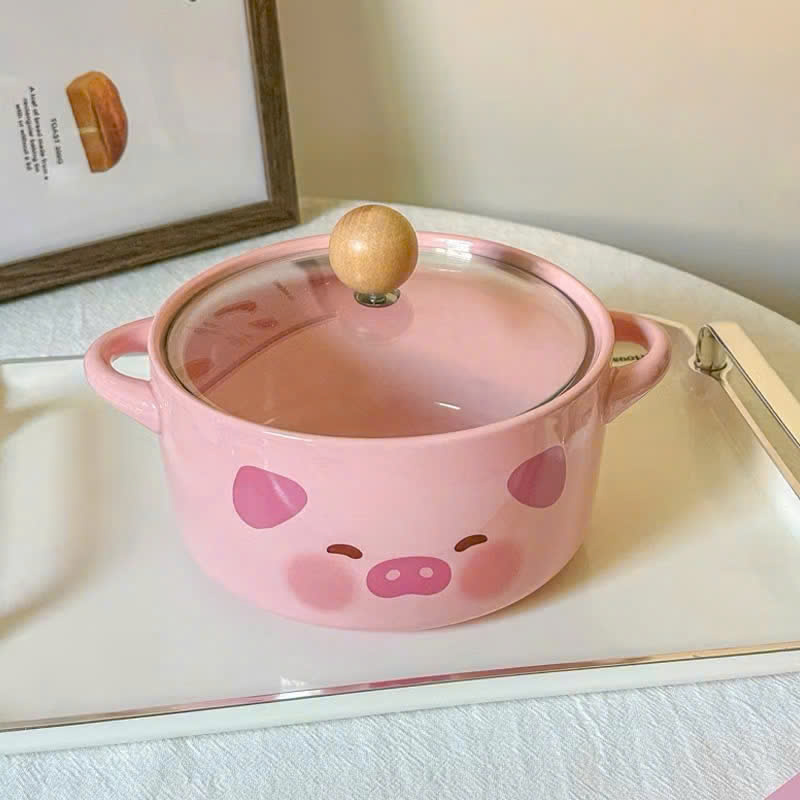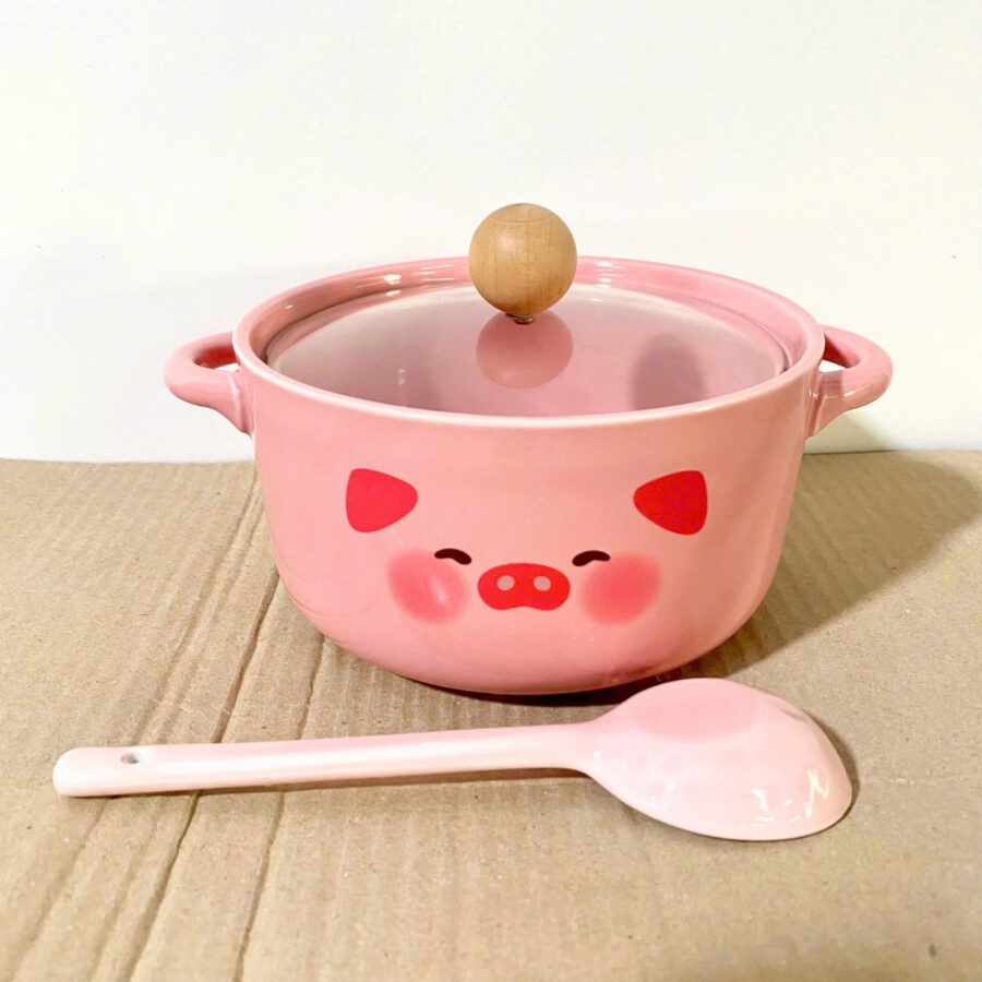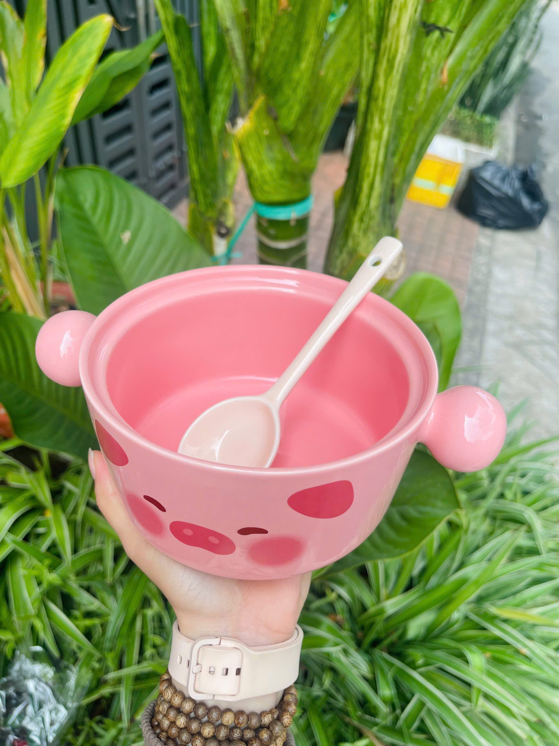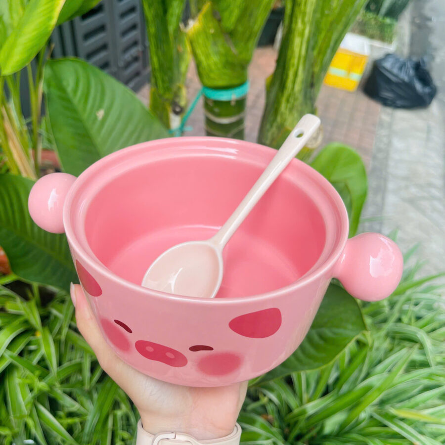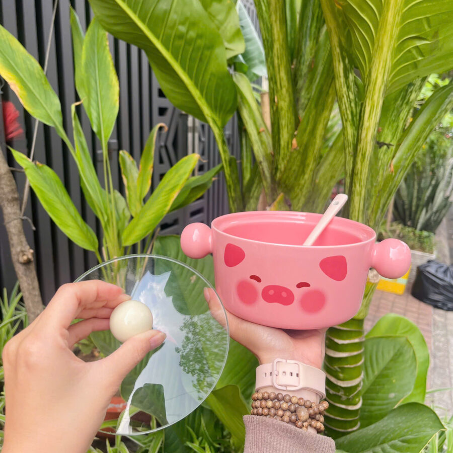 Tô Ăn Mì Bát Úp Mì Gốm Sứ Có Nắp Đậy Thuỷ Tinh Heo Hồng